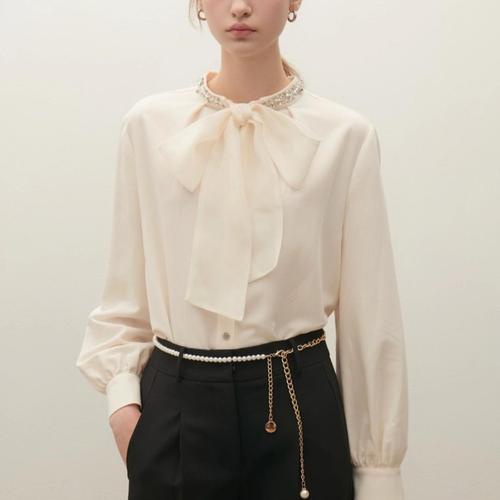 [샤틴]큐빅.진주장식넥 리본타이 블라우스S254M254A03