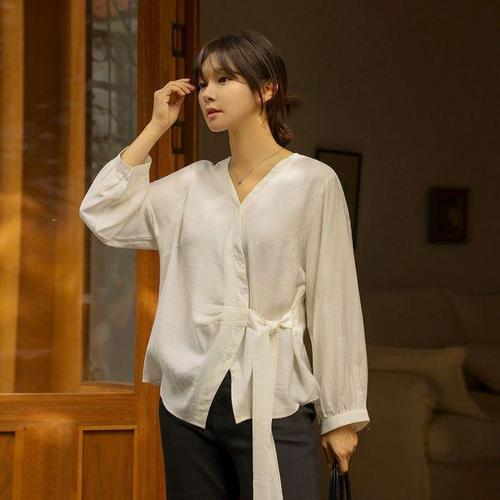 [다잇템]여자 가을출근룩 박시핏 랩남방 언발 리본 셔츠