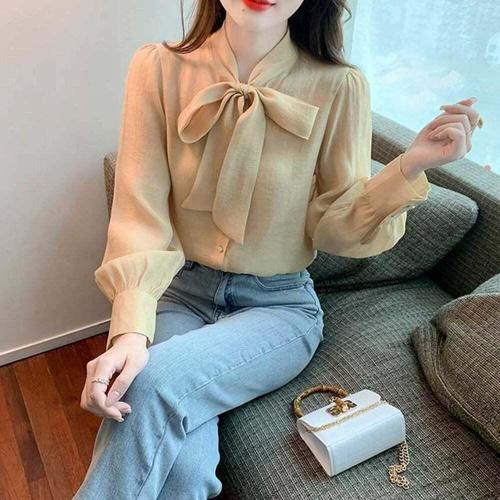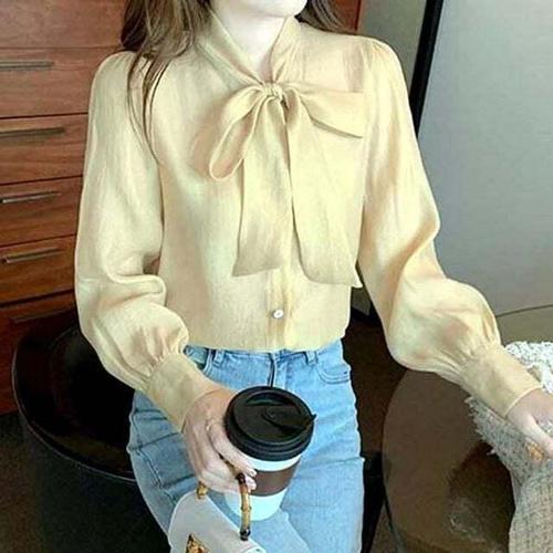 블라우스 셔츠 브라우스 하객룩 오피스룩 출근룩 리본 쉬폰