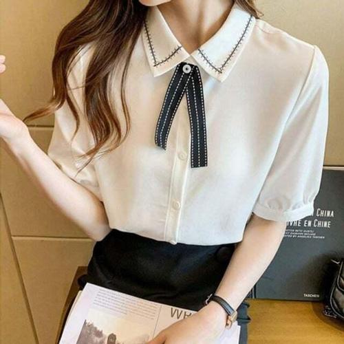 [셀럽하우스]셔츠기본 VBMC1434 블라우스 카라 정장 반팔 탈부착 1P 리본