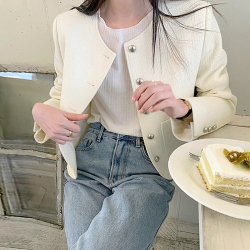 [무드무드] 리브르 노카라 트위드 자켓