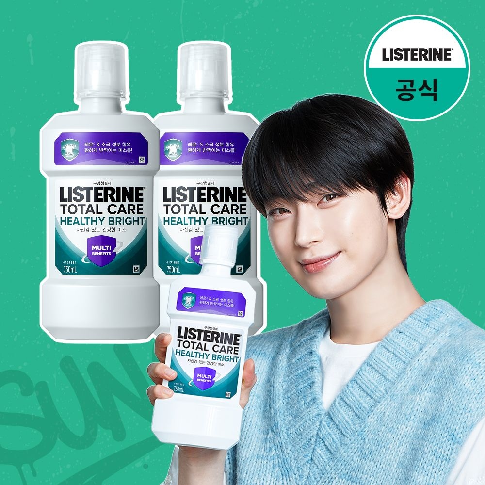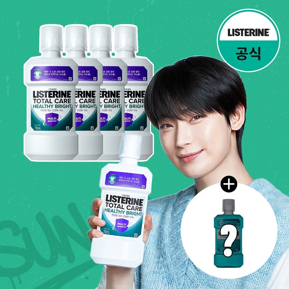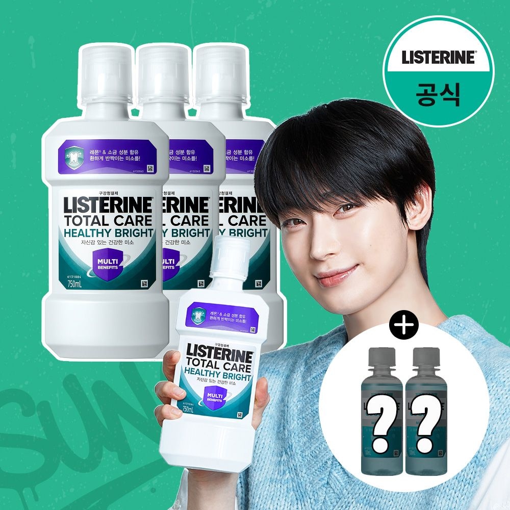 리스테린 토탈케어 헬씨 브라이트 750ml, 4개 + 증정(쿨민트 100ml, 3개)