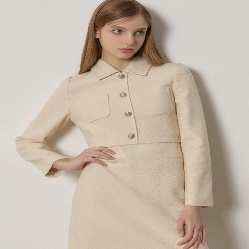 [리스트][리스트] 프리미엄 레이어드 버튼 트위드 울 원피스