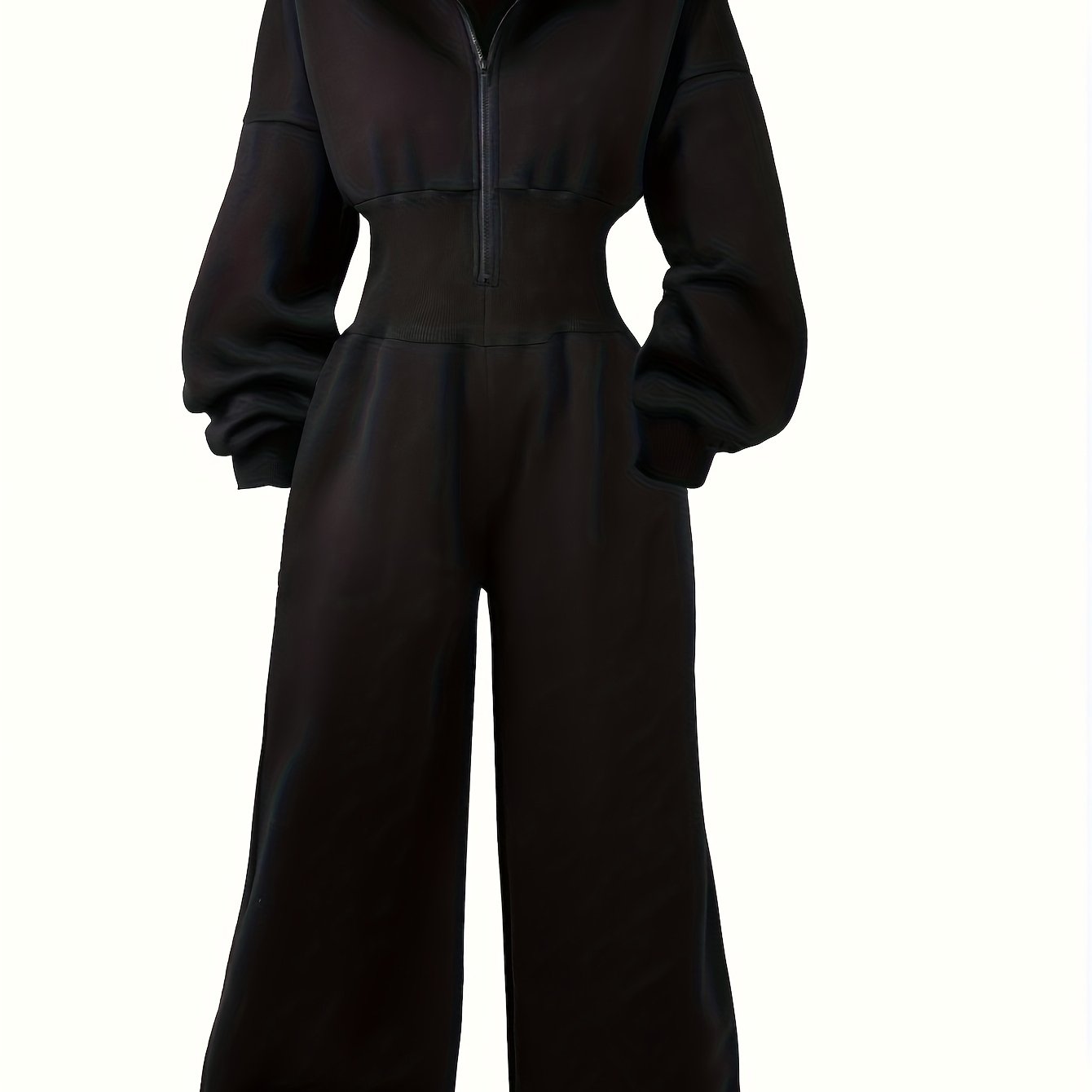 TEMU 여성용 Y2K 풀 레그 후드 점프수트 - 지퍼 프론트 & 와이드 레그 팬츠, 루즈핏 바디수트, 스트리트웨어, 출퇴근 및 사계절 착용, 세탁기 사용 가능 (단색)