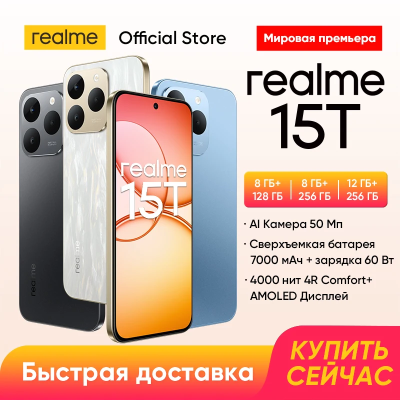 [월드 프리미어] 리얼미 15T 5G 스마트폰 7000mAh 배터리 60W 충전 50MP 전후면 카메라 6.57인치 4000니트 AMOLED 디스플레이 NFC