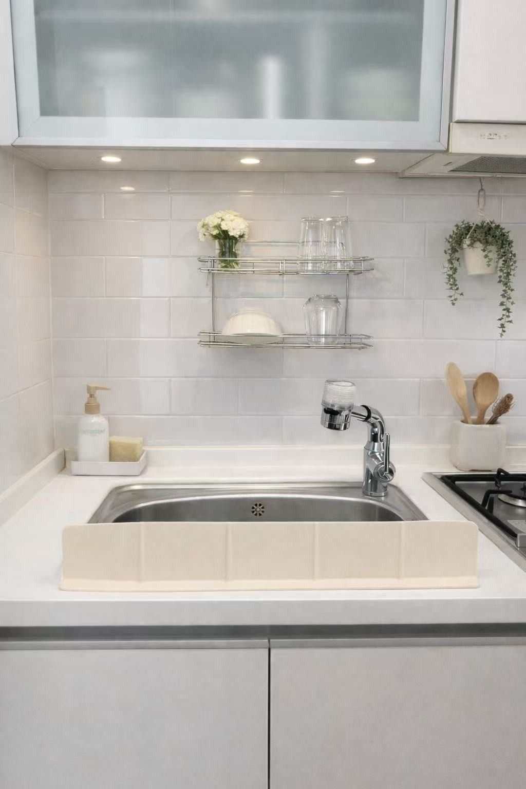 싱크대 물막이 이중틈새차단 처마 구조 실리콘 씽크대 물막이 수세미 거치대 증정