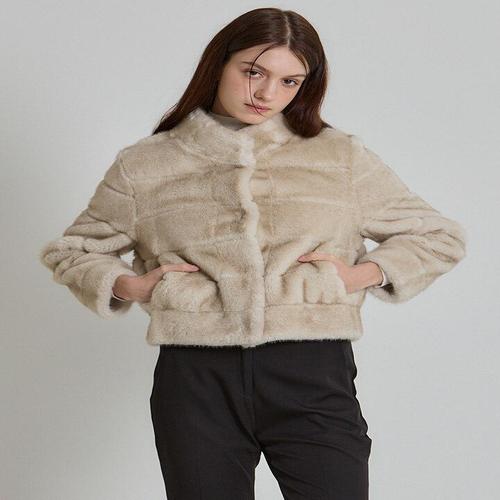라벨르by신영모피 밍크스크랩 카라 자켓