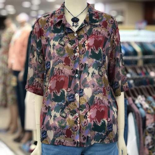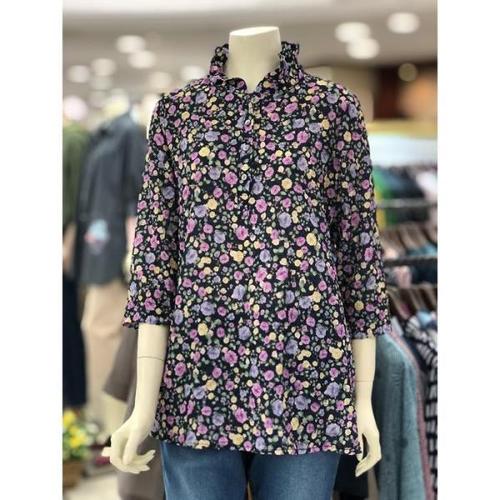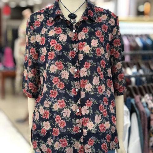[리우베]꽃무늬 프린트 5부소매 블라우스 리우베