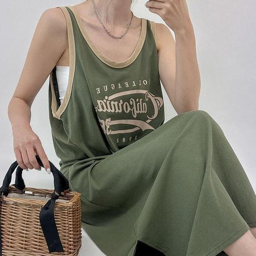 [미라클세븐]여성 여름 리조트룩 배색 프린트 유넥 슬리브리스 롱드레스