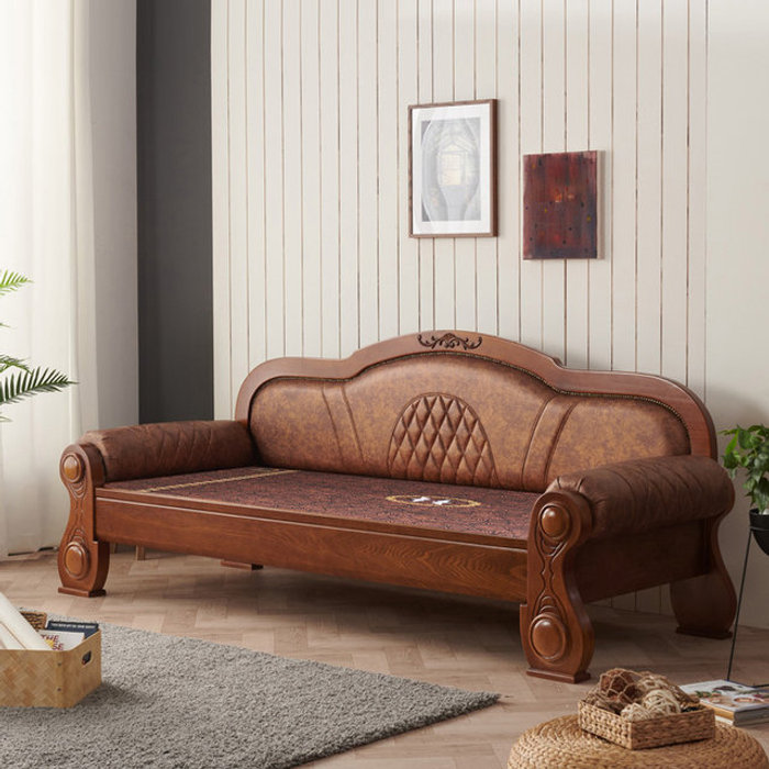 [장수돌침대]SF3843 안젤레토 데이베드 천연가죽 장수약돌 돌소파 온돌 온열 돌쇼파(풀세트)