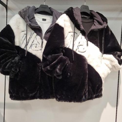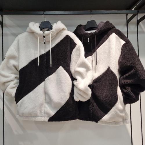리트머스 HC34 남녀공용 비대칭 절개 배색 후드 집업 공용 퍼 점퍼, 공용
