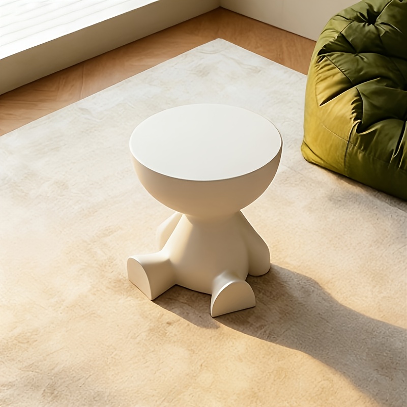 TEMU 모던 베어형 플라스틱 나이트스탠드 - 세련된 화이트 수납함, 침실과 거실에 적합, 조립 쉬움, 컴팩트 디자인, 작은 공간에 이상적, 침실 수납함 | 유머러스한 가구 | 플라스틱 제작, 침실 인테리어