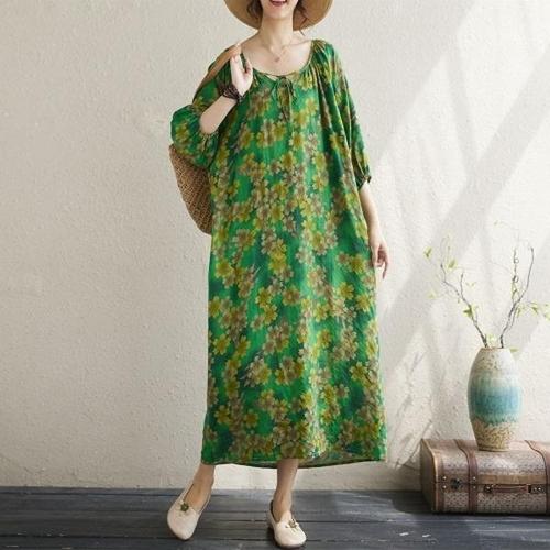 [엄지척]G126666_플라워패턴 루즈핏 린넨 롱원피스_19910279_667501
