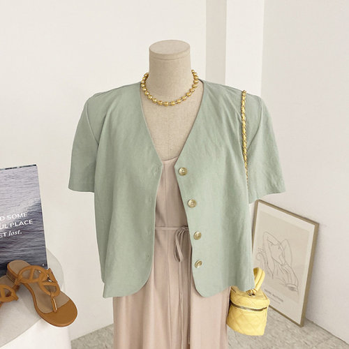 [SISTINA] 인기 린넨 원버튼 반팔 재킷_AWWJKN21040