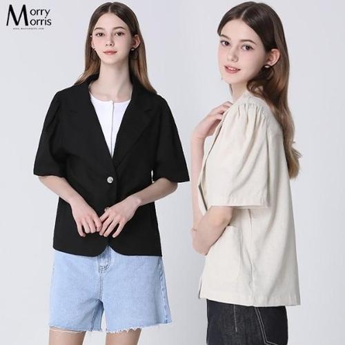 [더블유쇼핑][모리모리스(Morry Morris)] 비비안 투버튼 린넨 반팔 자켓_16689492_588590