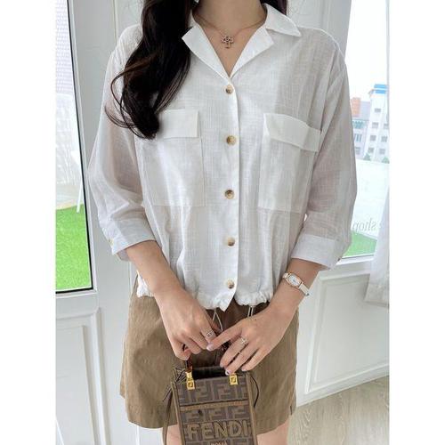 [옷자락] 여자 데일리 멀티컬러 면 린넨 포켓 셔츠 남방
