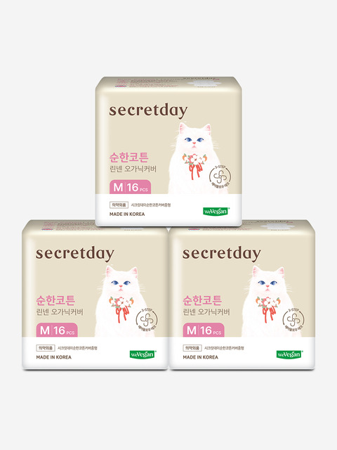 [시크릿데이] 시크릿데이 생리대 순한코튼 린넨오가닉 중형 16PX3팩/대형 14PX3팩/소형 18PX3팩