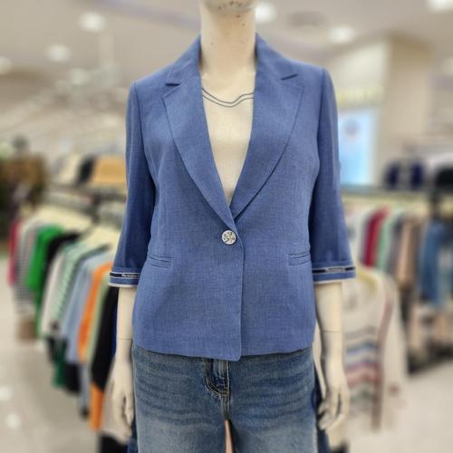 샵앤) 국산 여성 정장 카라넥 린넨 100 반팔 하프 자켓 SML-WJK-4438-블루