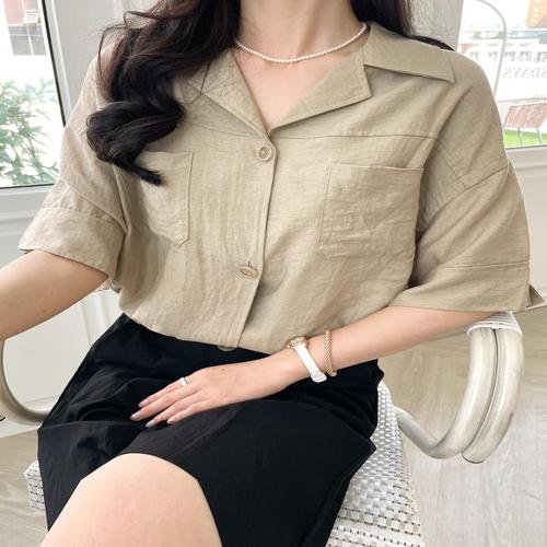 모네즈 린넨 블렌디드 썸머 여성 카라 셔츠 자켓