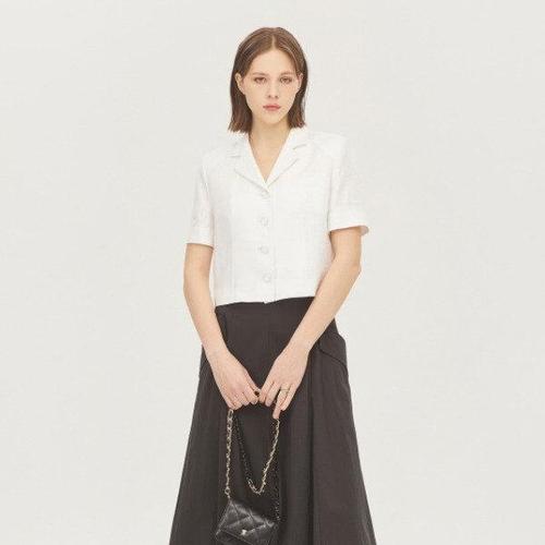 [시슬리]오픈 카라 린넨 크롭자켓_SAJKC5431