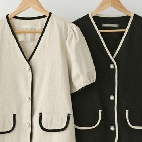 [엄지척]배색 306K099S 린넨 빅사이즈 자켓 펄버튼_20339998_667501
