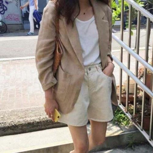 [셀럽하우스]린넨 QKKZ1995 베이직 오버핏 자켓 롤업 올데이 캐주얼 싱글 마