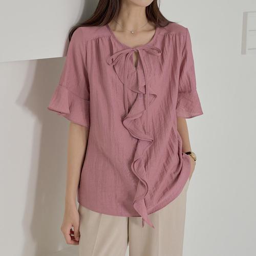 [로즈미] [55~77] 데이미 린넨 러플 블라우스