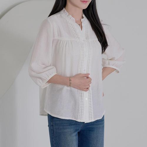 [로즈미] [55~77] 모즈 린넨 레이스 블라우스