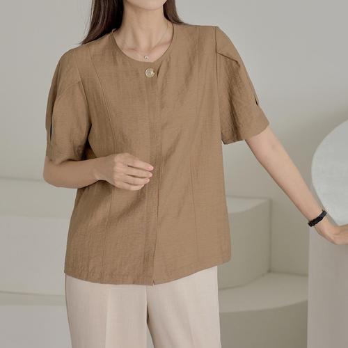[엄지척]F007300_라운드 단추포인트 7부 린넨블라우스 티셔츠_19660529_667501