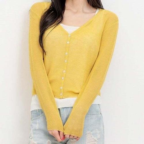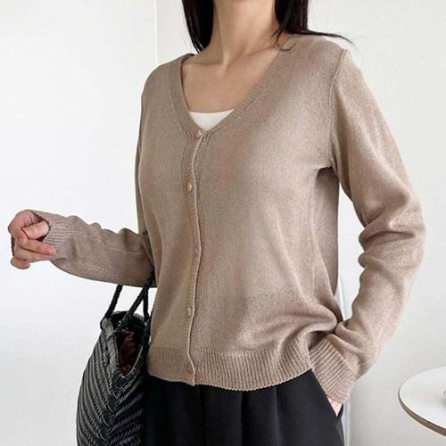 [셀럽하우스]가디건 FRFD6097 니트 여름 얇은 린넨 겉옷 에어컨 브이넥