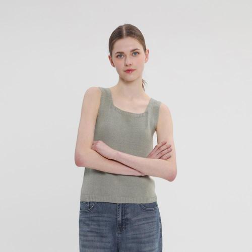 [유닛]리사이클 린넨 혼방 사각넥 니트 슬리브리스 탑 [UFJKSN242N-KHAKI]