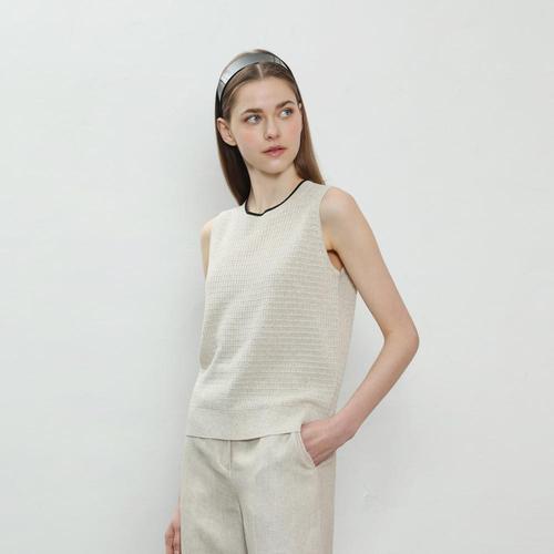 [유닛]린넨 혼방 배색 니트 슬리브리스 탑 [UFJKSN241N]