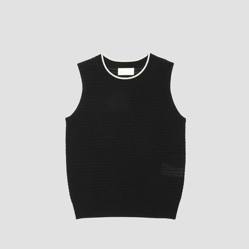 [유닛]린넨 혼방 배색 니트 슬리브리스 탑 [UFJKSN241N-BLACK]