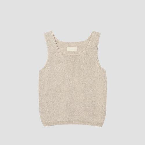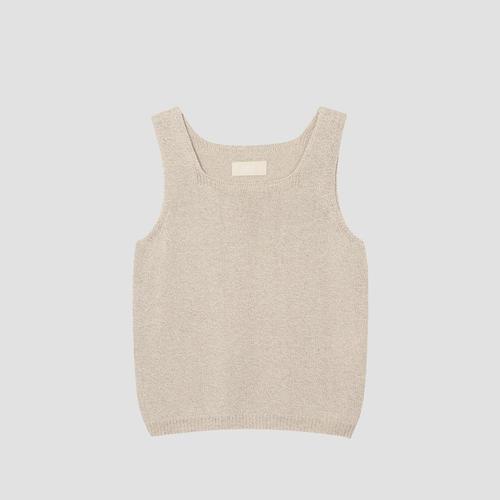 [유닛]리사이클 린넨 혼방 사각넥 니트 슬리브리스 탑 [UFJKSN242N-LIGHT BEIGE]