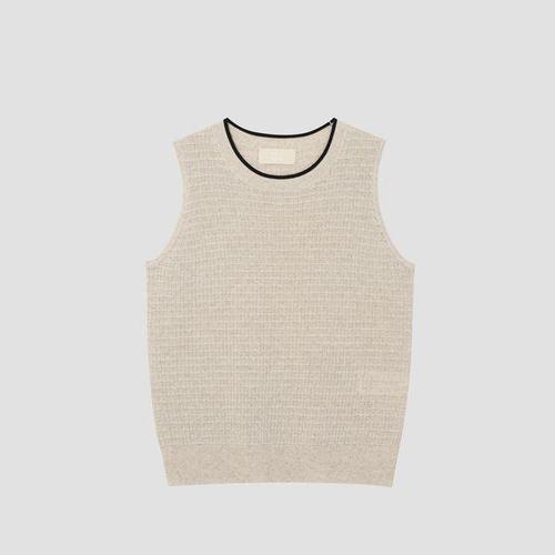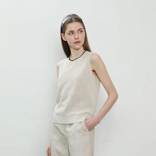 [유닛]린넨 혼방 배색 니트 슬리브리스 탑