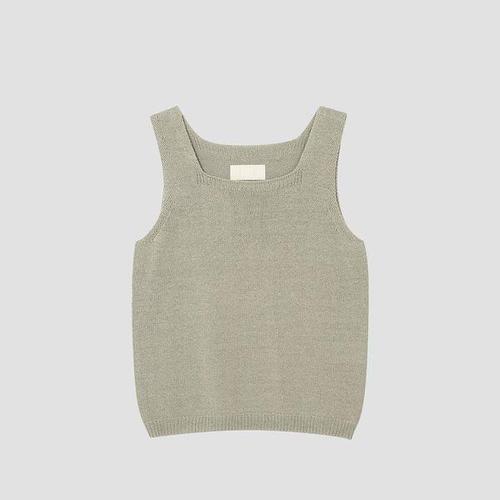 [유닛]리사이클 린넨 혼방 사각넥 니트 슬리브리스 탑
