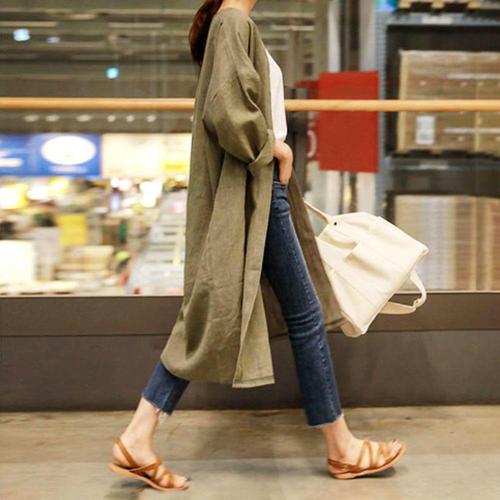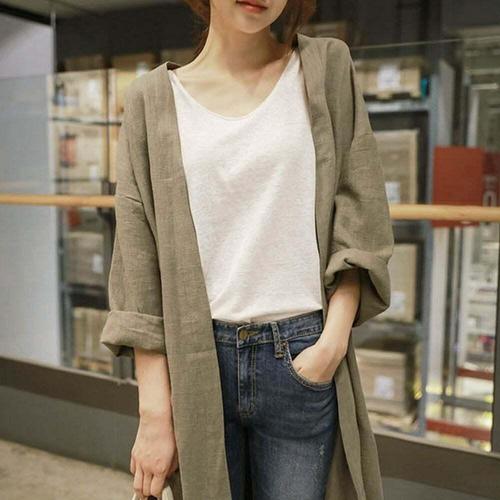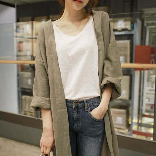 [셀럽하우스]여성 ZFER6394 봄 여름 데일리 린넨 롱 가디건 편안한 아우터