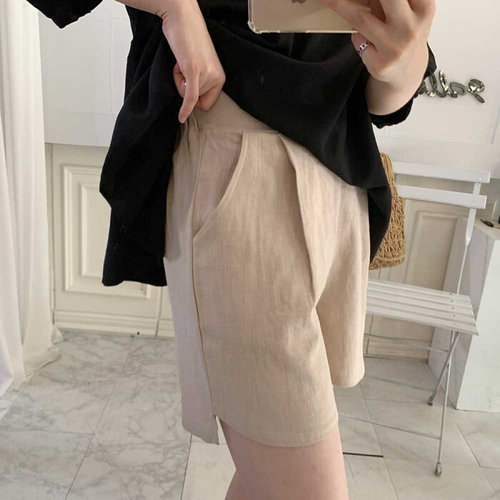 [셀러허브_여성트랜드패션]ONM 여름반바지 여자 린넨 뒷밴딩 A라인 반바지 슬랙