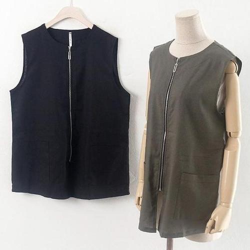 샵앤) 국산 여성 빅포켓 레이어드 민소매 린넨 집업 조끼 SML-WVS-4435-크림