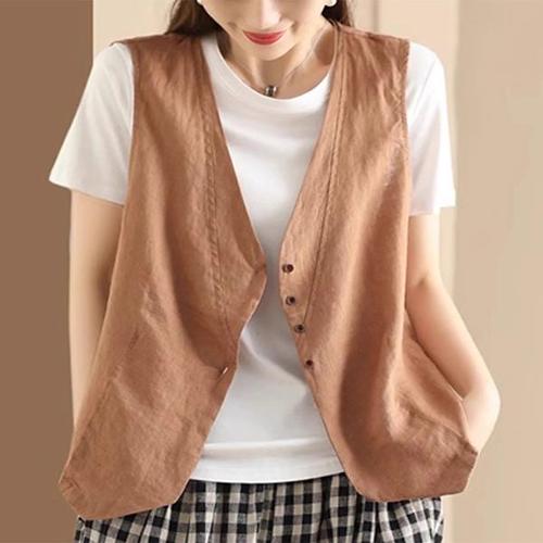 여성용 봄 여름 빅사이즈 브이넥 캐주얼 린넨 조끼 숏 베스트
