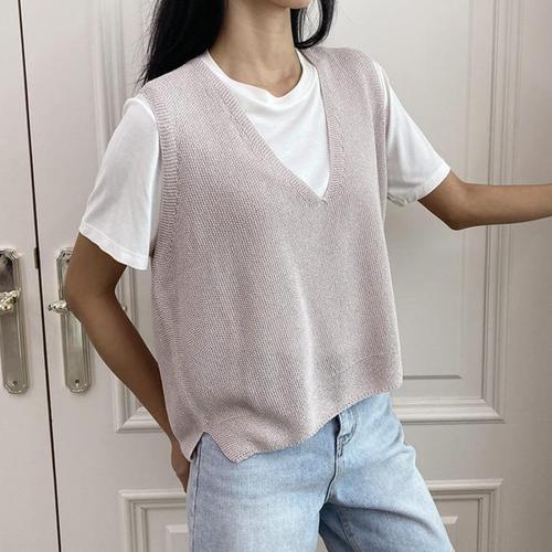 여성 여름 아우터 정장 브이넥 린넨 베스트 솔리드 민소매 얇은 나시 NMJ358