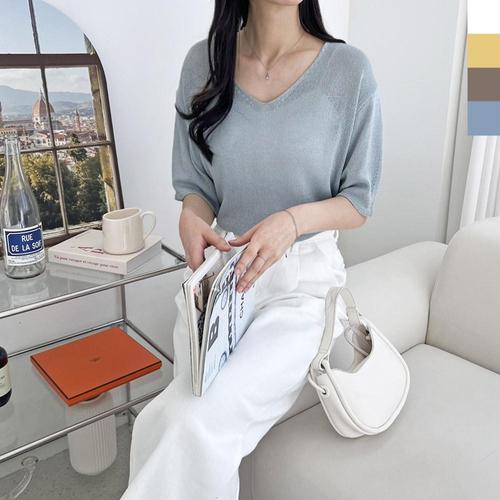 [샵앤]여성 골지 린넨 단가라 V넥 반팔 니트 티셔츠 21DS-WKN-14