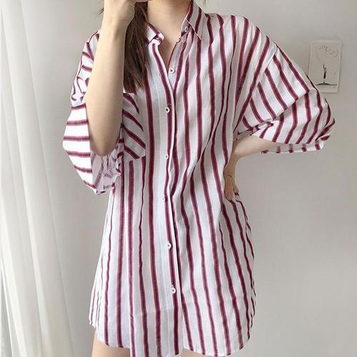 [로즈엘리]여리여리 루즈핏 린넨 스트라이프 여름셔츠 블라우스 2컬러