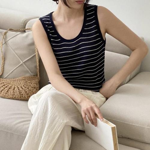여자 데일리 심플 린넨 스트라이프 나시