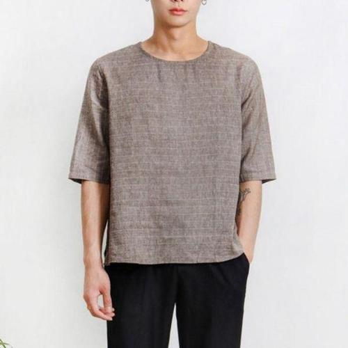 [셀러허브_여성트랜드패션]라운드넥 티 데일리 소재 시원한 남자상의 면티셔츠 린넨 남성상의 반팔면티