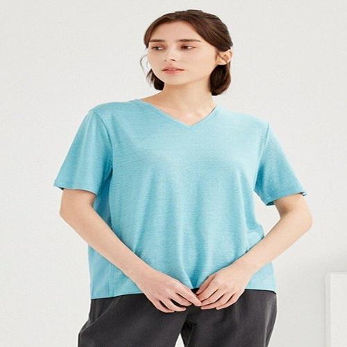 여성용 제게로 베이직 린넨 무지 라운드 반팔 티셔츠 cpt16493k53