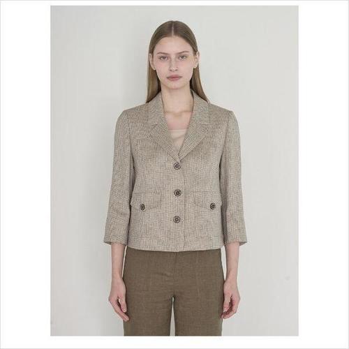 [올포유]여성 린넨 체크 7부 스탠카라 자켓 ALKKL3461-915_G