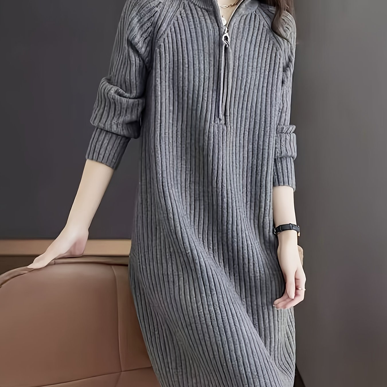 TEMU 여성용 우아한 스웨터 드레스 - 긴소매 지퍼 앞면, 루즈핏 미디 기장 단색 드레스, 가을/겨울 포멀 & - 여성 의류, 겨울 옷장, 하이넥 디자인, 고품질 스티칭, 스타일리시한 의상, 오피스룩, 롱원피스, 원피스 여성