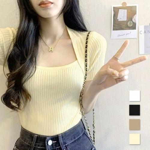 [엄지척]코디피셜 릴리 얇은 슬림 하프 넥 여성 니트 반팔_19610634_667501