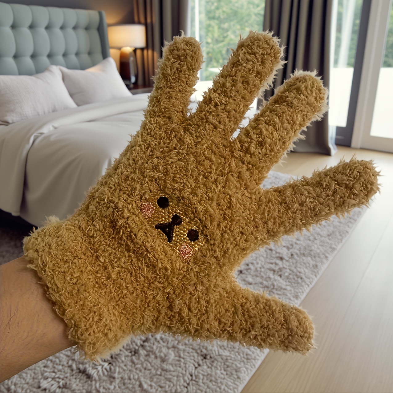 TEMU 여성용 방한 겨울 장갑 - 귀여운 곰 자수 디자인, 두꺼운 벨벳 소재, 고신축성 핑거리스 장갑 (사이클링 및 야외 활동용), 크리스마스 & 할로윈 선물
